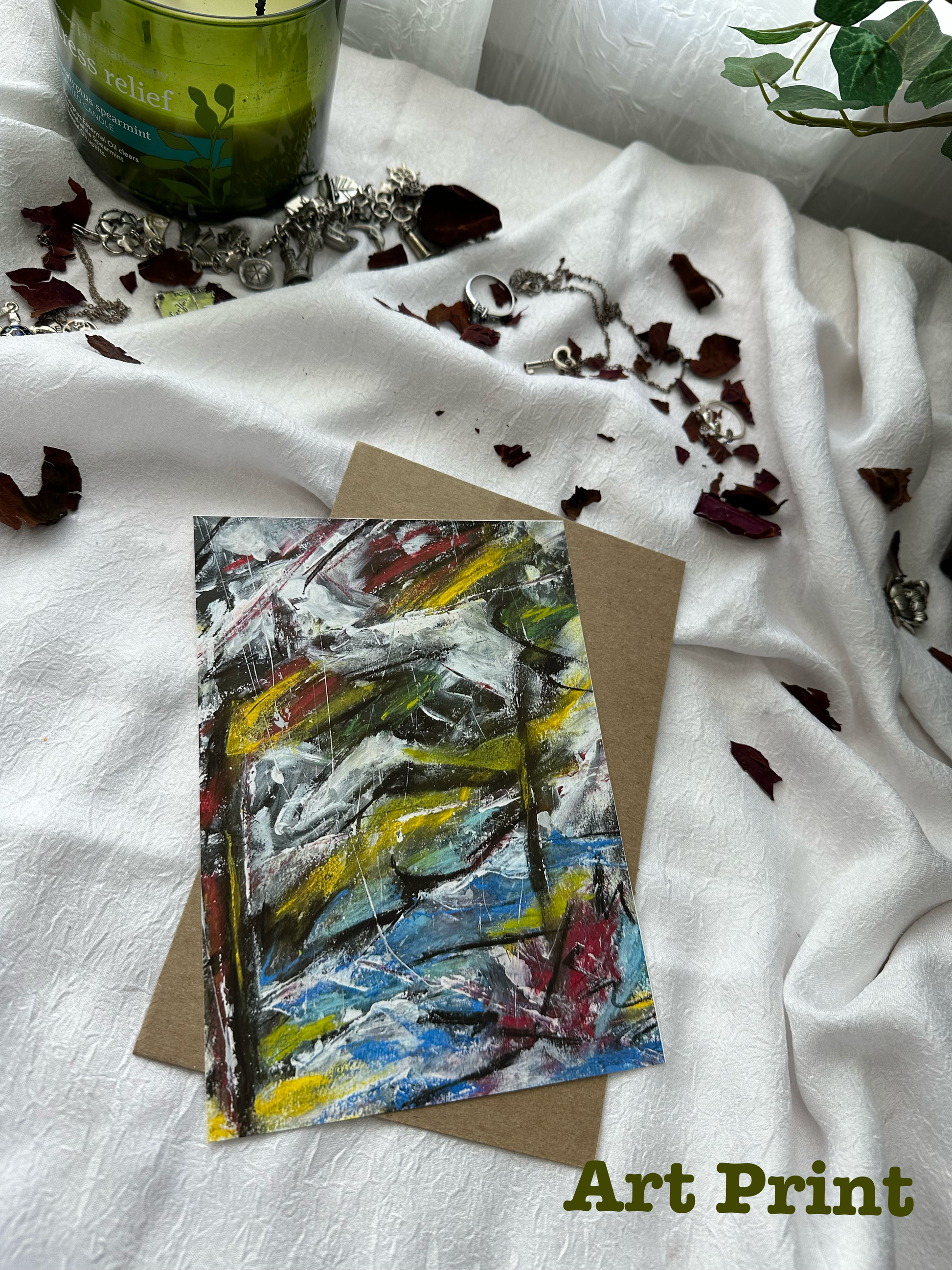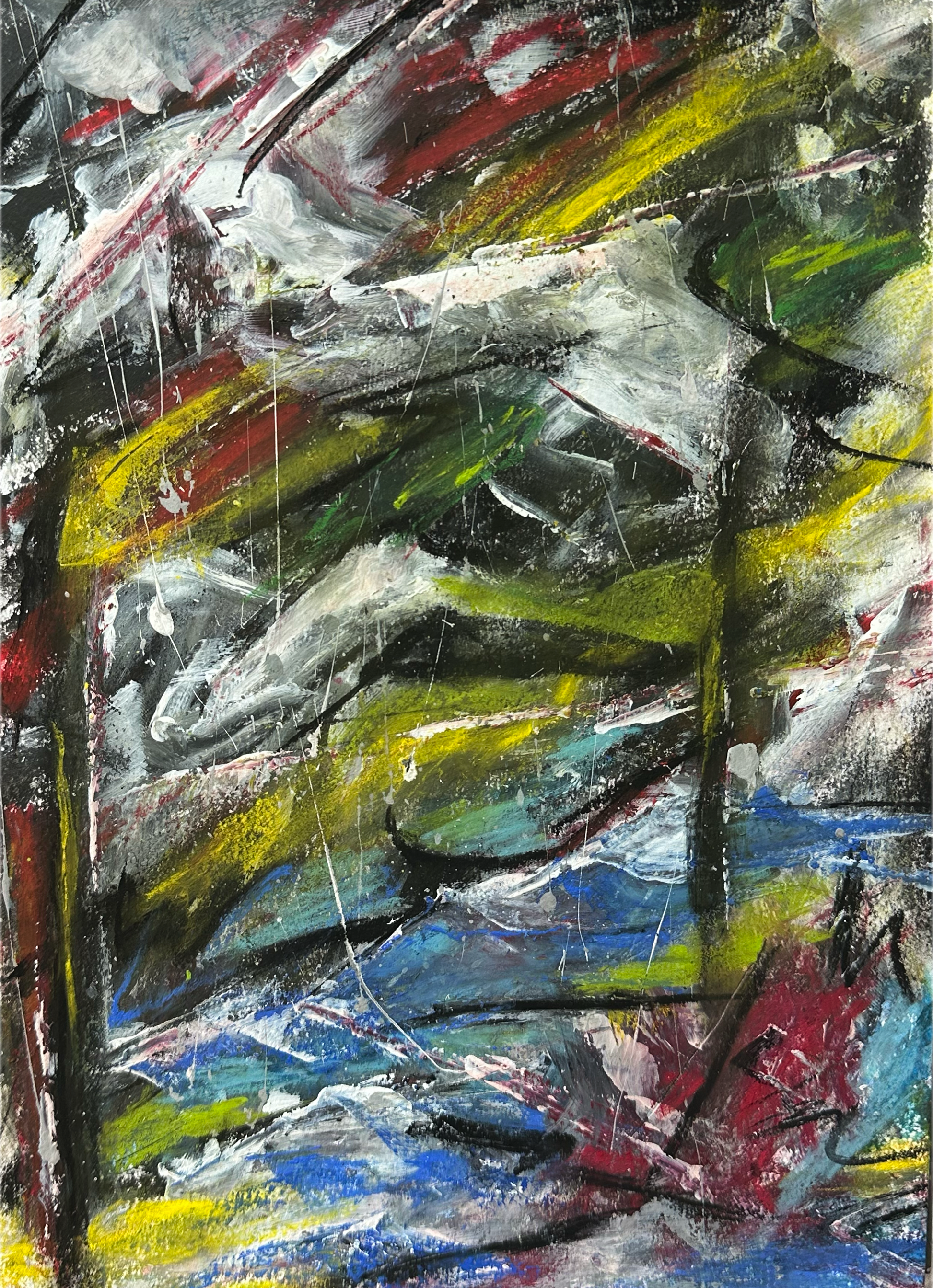 An abstract mixed media piece rich in texture, inviting personal interpretation.